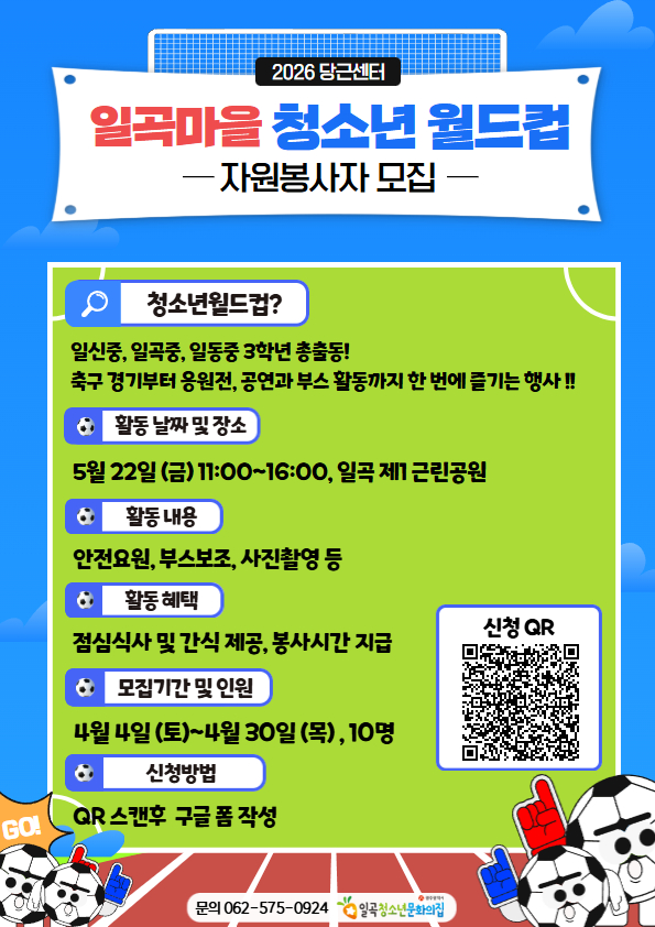 2026년 일곡마을 청소년월드컵 자원봉사자 모집